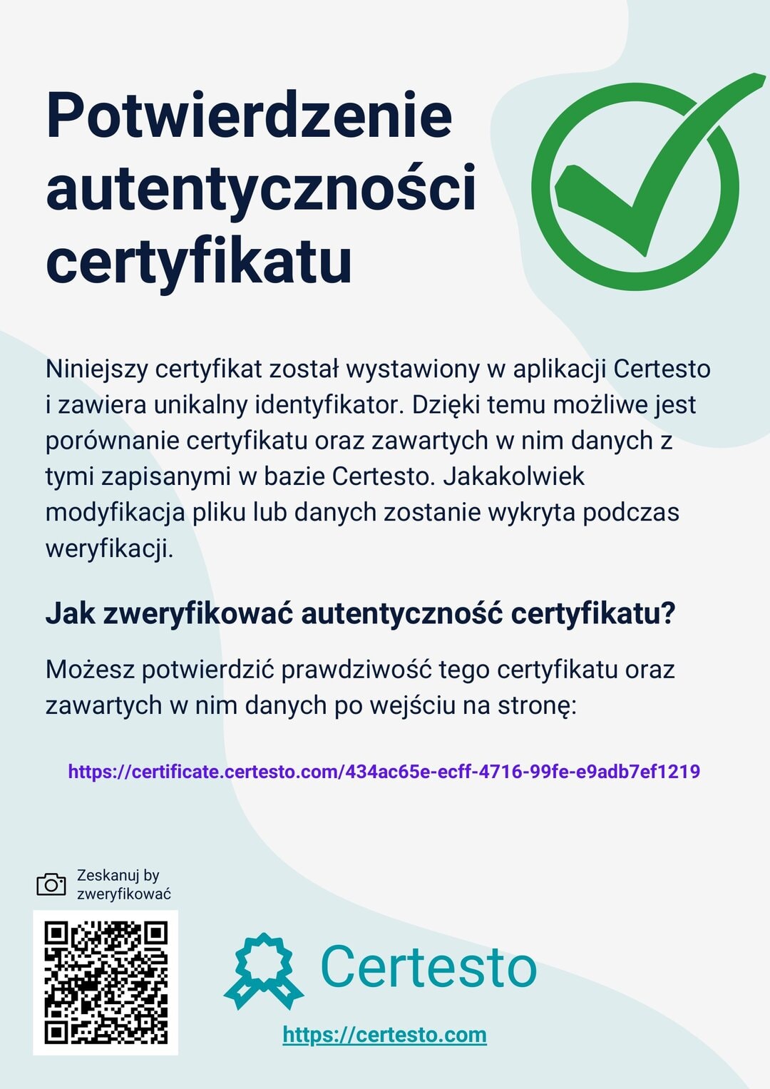 Posiada kwalifikacje zawodowe, potwierdzone wykształceniem kierunkowym, praktyką i wiedzą zawodową.